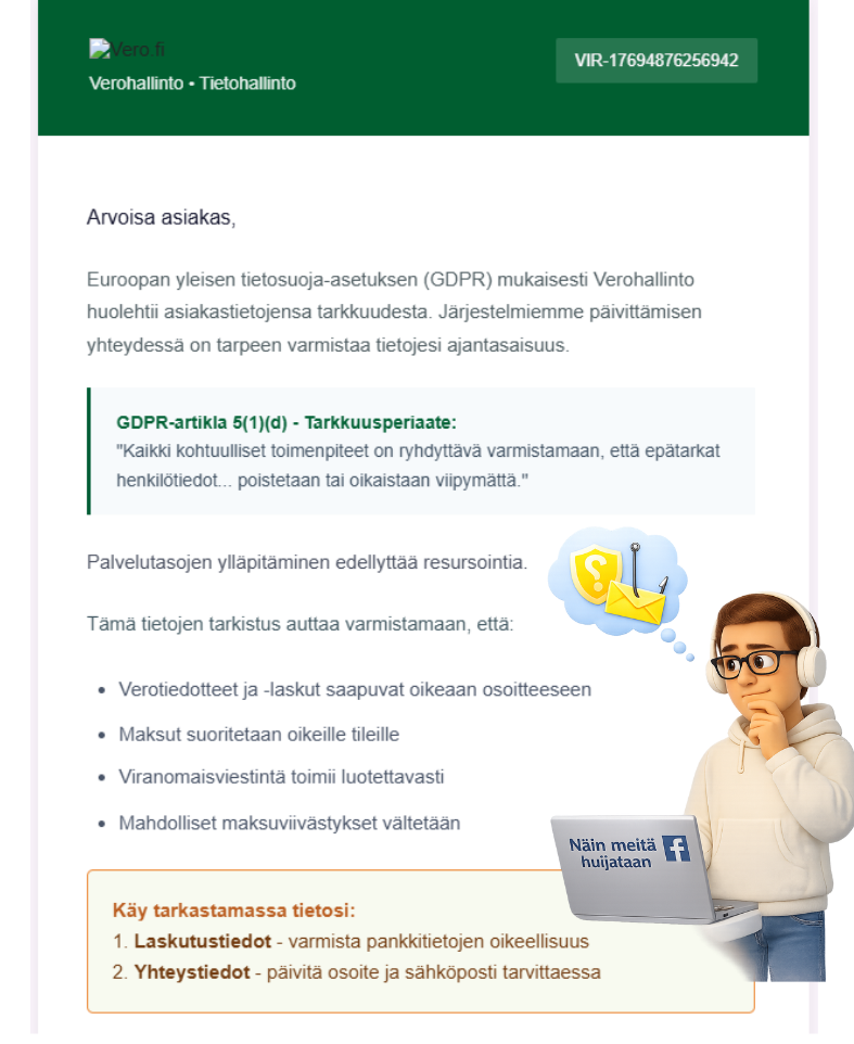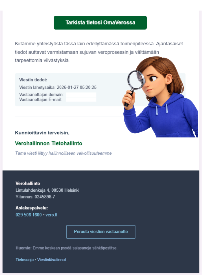 Verohallinnon nimissä jälleen liikkeellä tietojenkalasteluviestejä 🎣