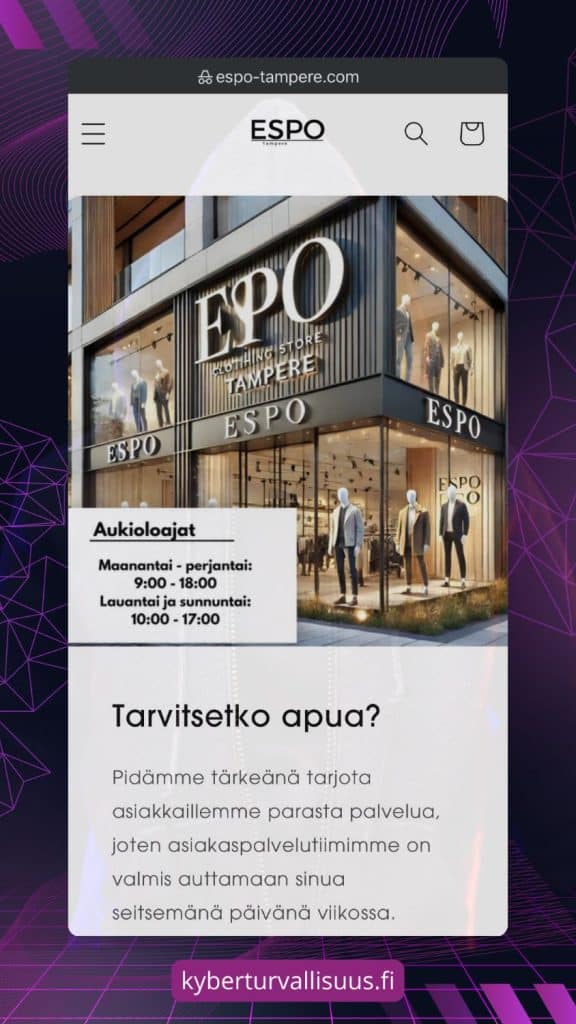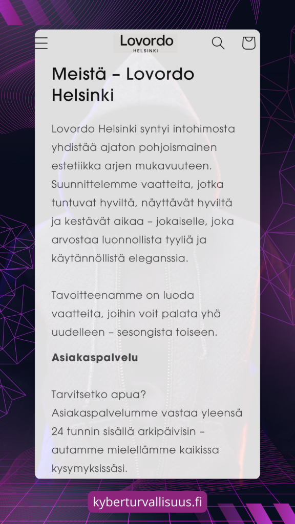 Tästä pääset lukemaan aiemman kirjoitukseni valeverkkokaupoista: Pöyliö.fi – Valeverkkokauppoja syntyy kuin sieniä sateella – Kyberturvallisuus.fi