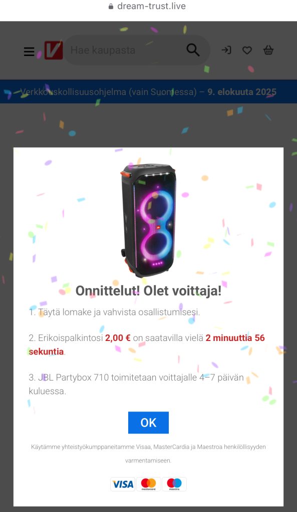Perinteistä huijausta tällä kertaa Verkkokauppa.com nimissä ⚠️